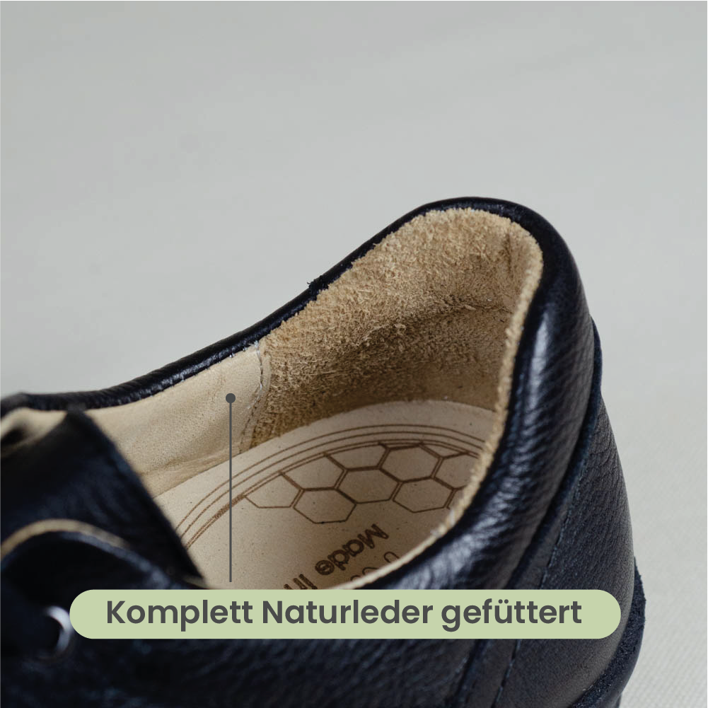 Unsere Schuhe bestehen aus sorgfältig ausgewählten, nachhaltigen Materialien – darunter pflanzlich gegerbtes Leder, Bio-Baumwolle und Naturkautschuk. Mehr über die Besonderheiten unseres Leders erfahren Sie hier.