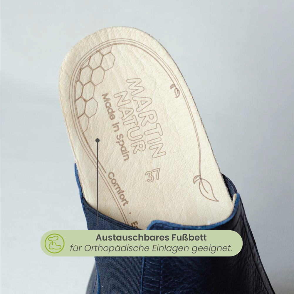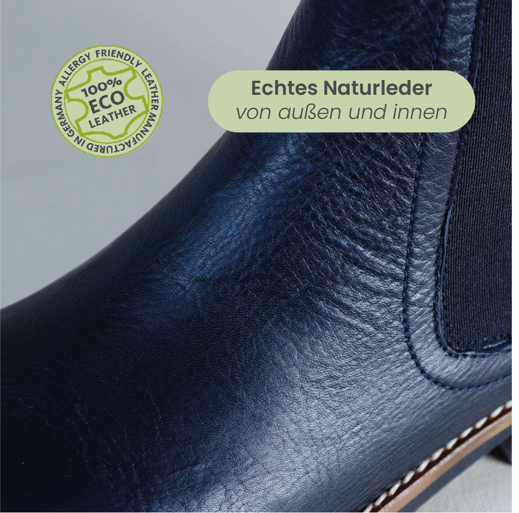 - Ökologisches, chromfrei gegerbtes Leder – atmungsaktiv, hautfreundlich und geruchsneutral