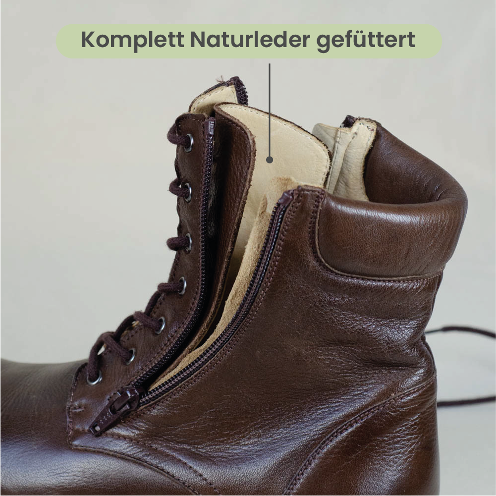 Unsere Schuhe bestehen aus natürlichen, umweltfreundlichen Materialien wie pflanzlich gegerbtem Leder und recycelten Rohstoffen. Zudem achten wir auf eine ressourcenschonende Produktion, kurze Transportwege und faire Arbeitsbedingungen.
